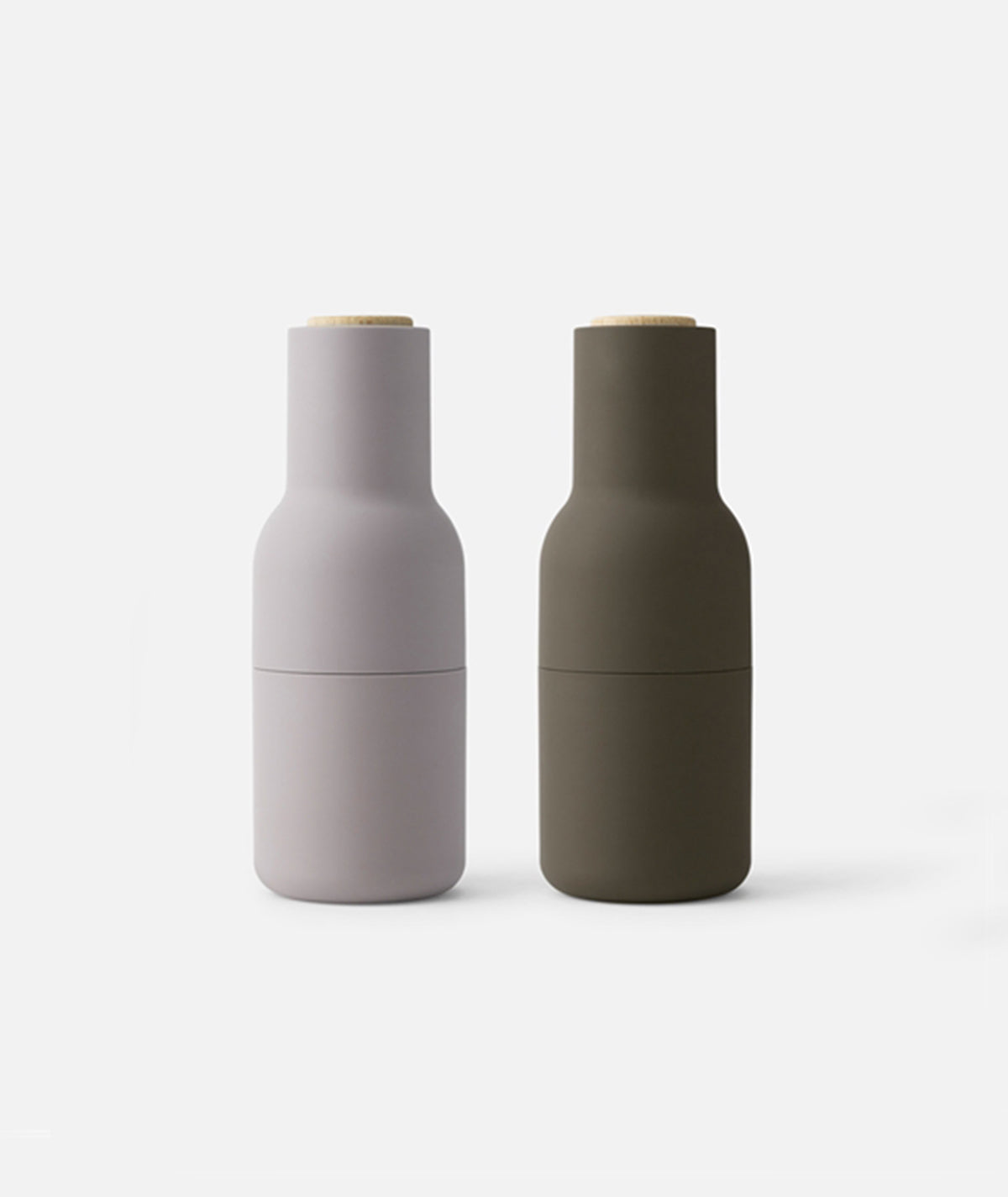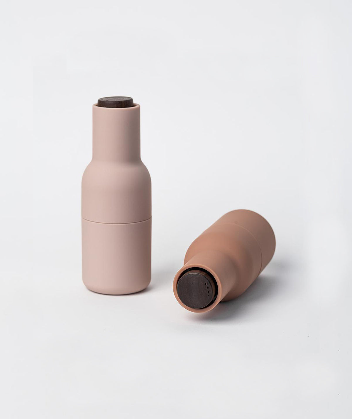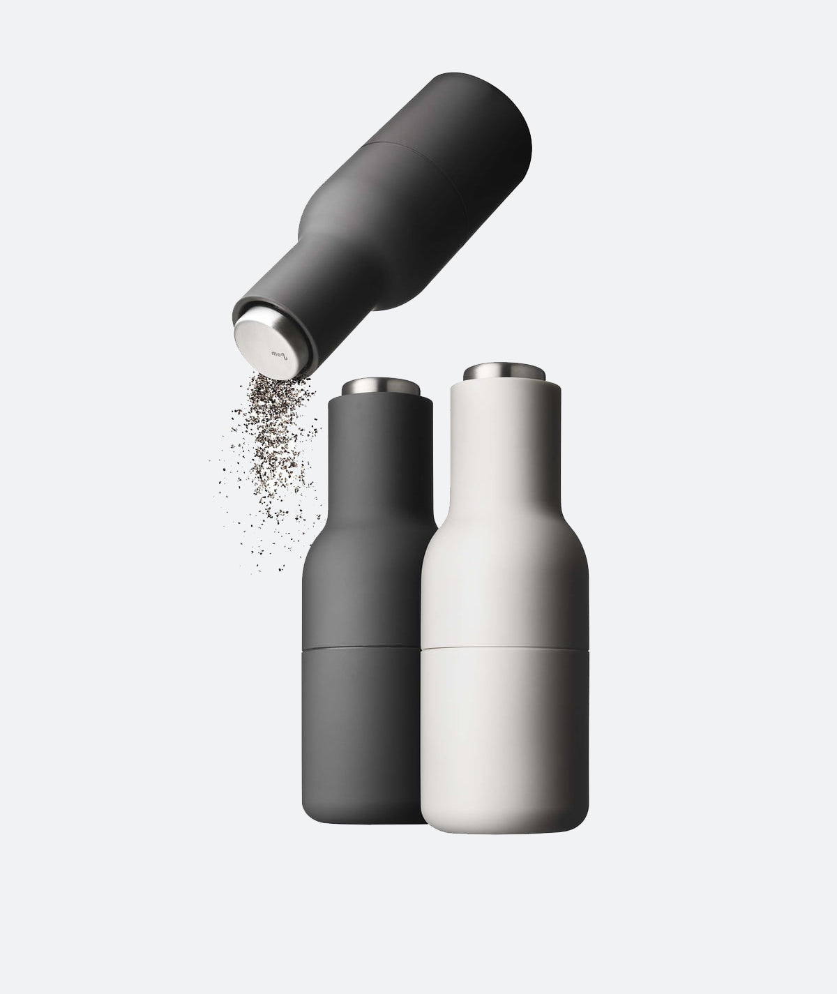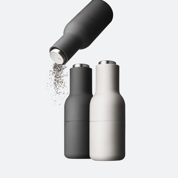 The Bottle Grinders are not your typical salt and pepper grinders. The form, shaped more like a bottle, cleverly tricks the user to engage with the design in a playful and experimental way – and the powerful ceramic mechanism encourages even further experiments as it tackles a wide range of spices and grains, nuts, seeds and dried fruits.