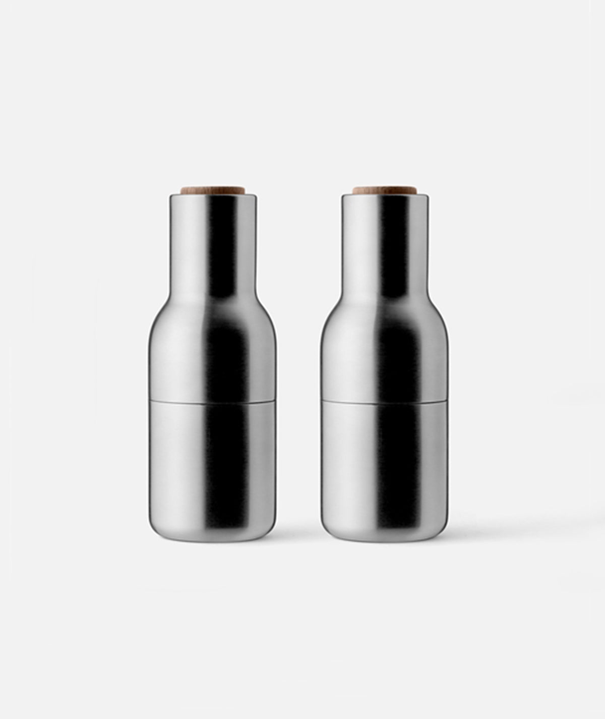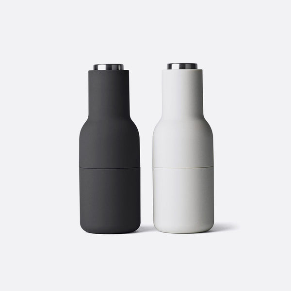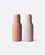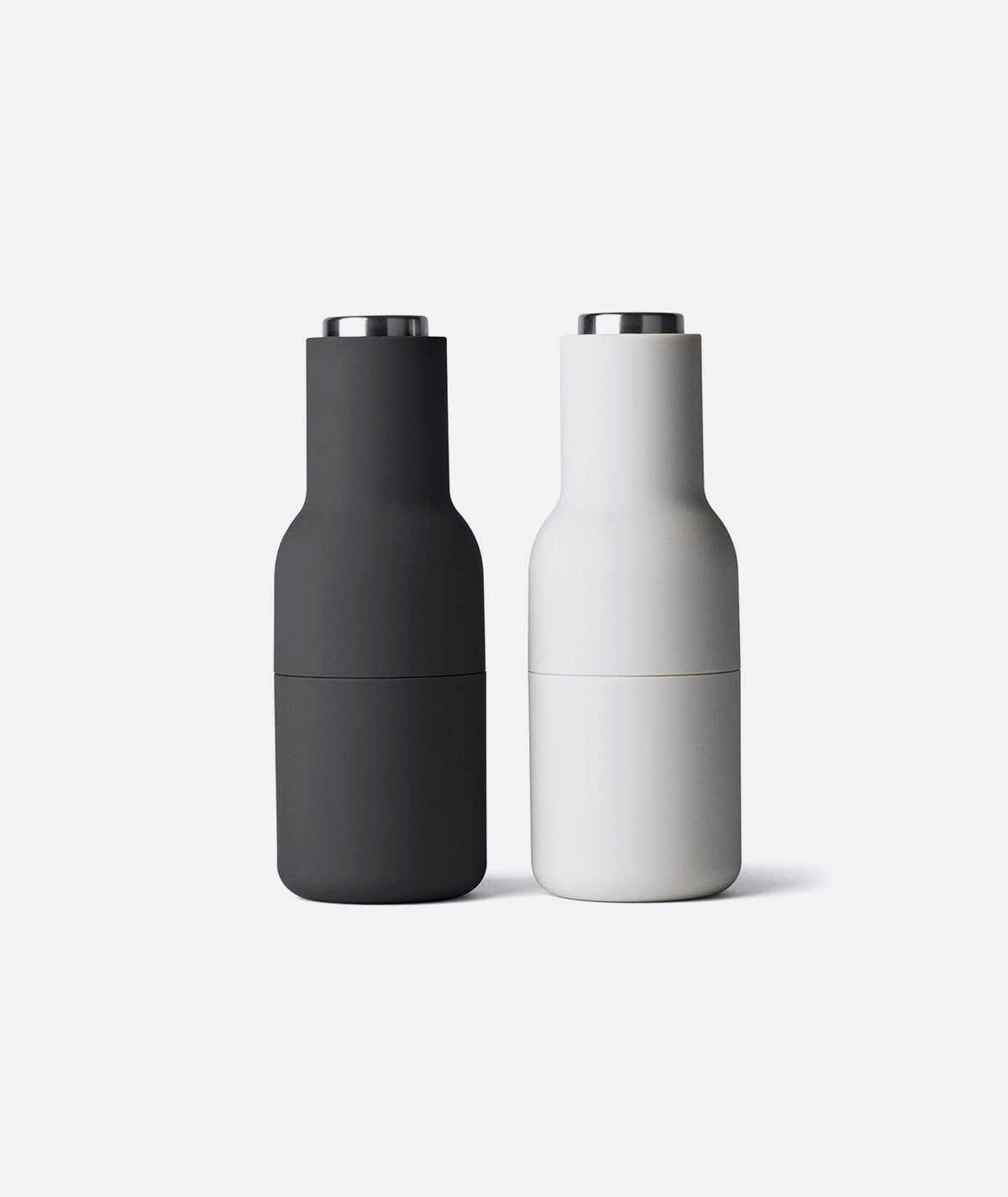 The Bottle Grinders are not your typical salt and pepper grinders. The form, shaped more like a bottle, cleverly tricks the user to engage with the design in a playful and experimental way – and the powerful ceramic mechanism encourages even further experiments as it tackles a wide range of spices and grains, nuts, seeds and dried fruits.