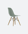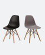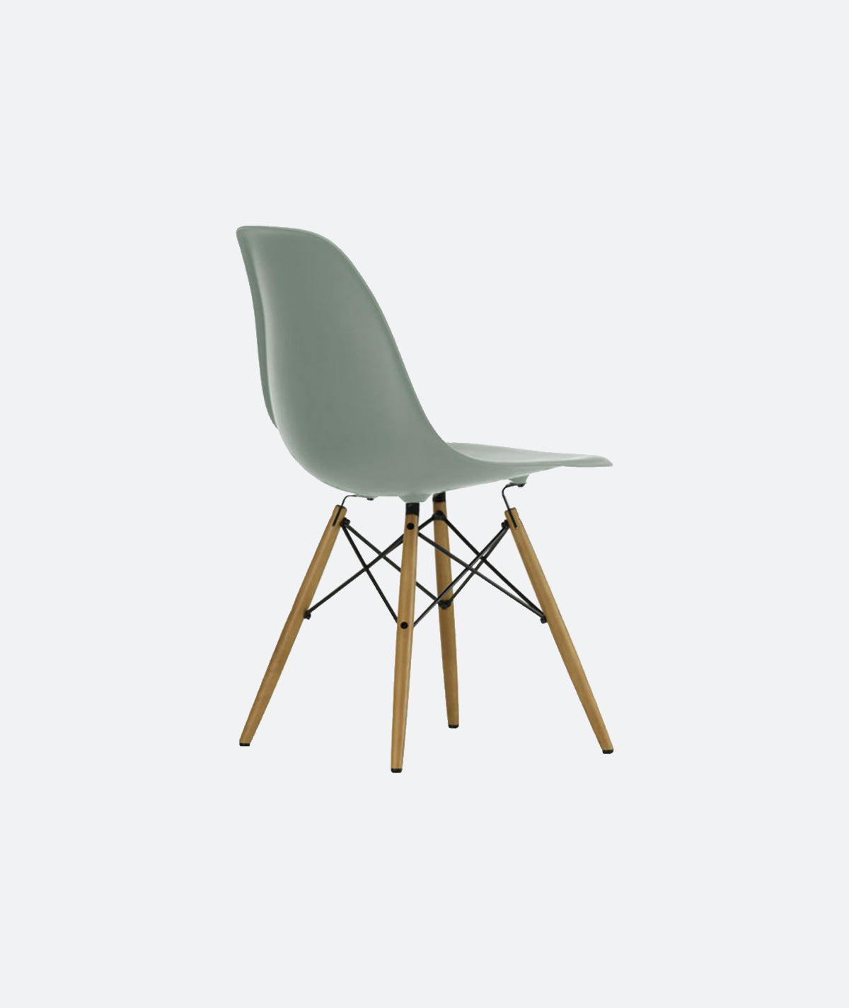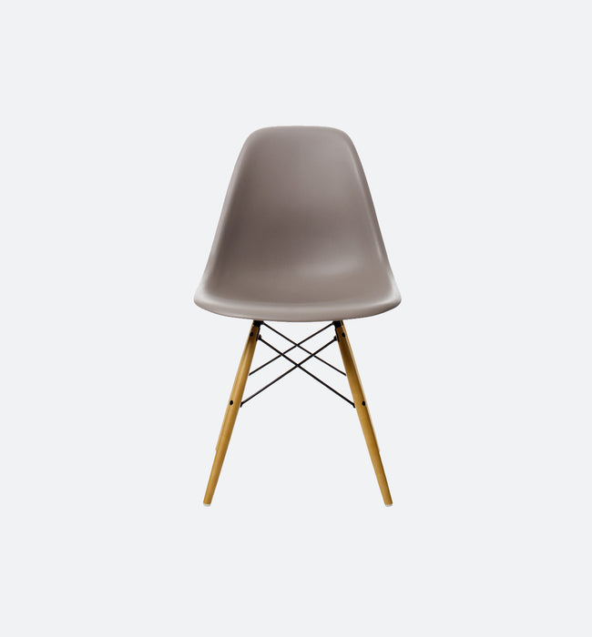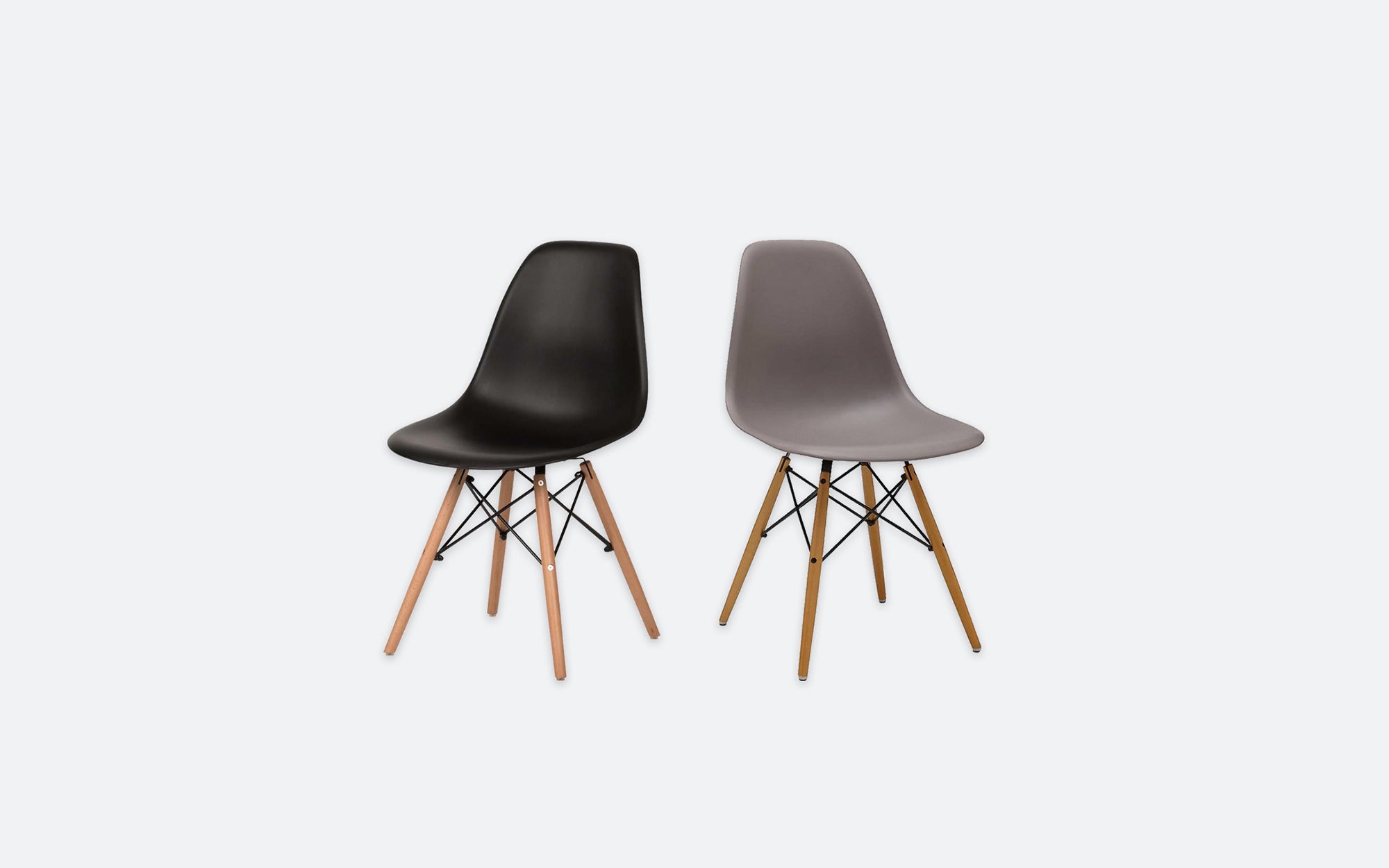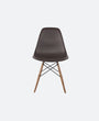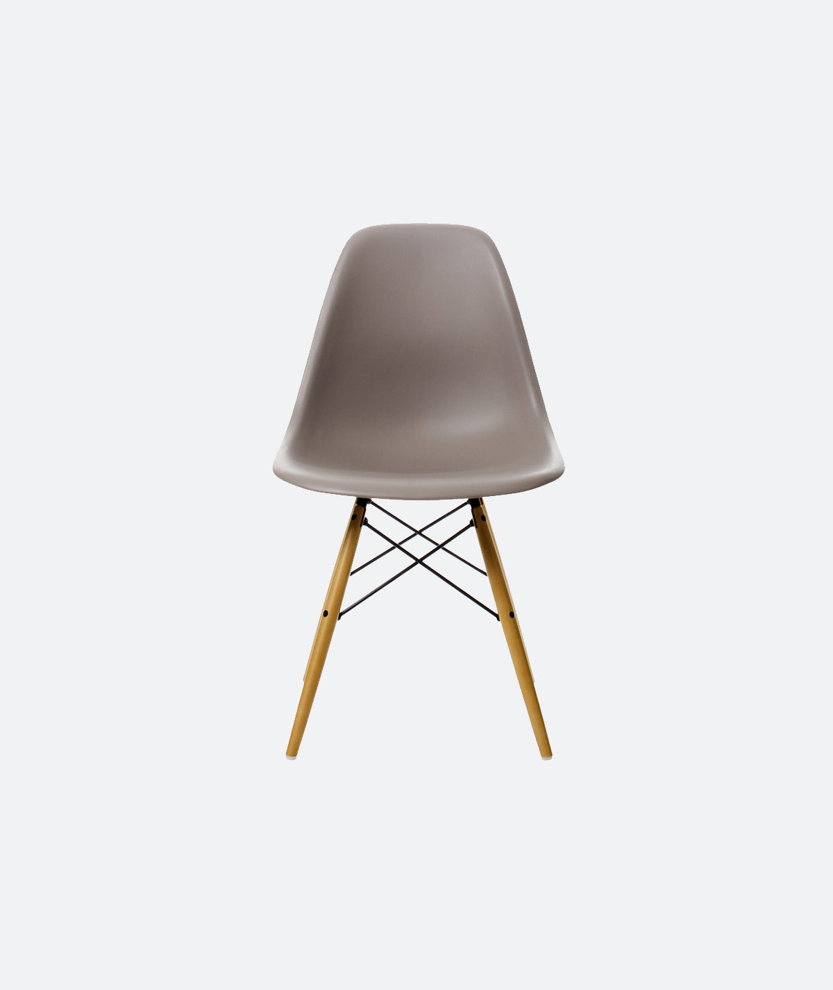 Combined the organically shaped seat shell with a four-legged wooden/iron base. The pairing of plastic and wood/iron gives the classic design a certain warmth and casual appeal. The seat shells can be fitted with seat cushions or full upholstery in a wide selection of fabric colors, enabling a multitude of individual configurations.